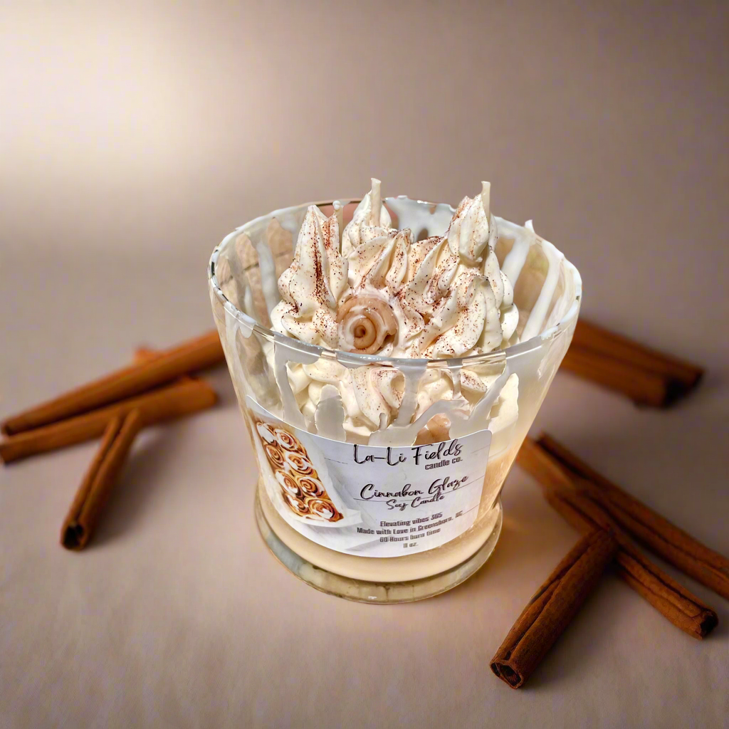 Our Cinnabon Glaze Dessert Candle is an absolutely tantalizing way to surround yourself with the cozy aroma of freshly-baked cinnamon delight! Get all the yummy smell of buttery buns and creamy vanilla icing without the need for a trip to the bakery! Plus, each candle is uniquely hand-crafted, so you won't find two exactly alike. Light up your life with a sprinkle of scrumptiousness!